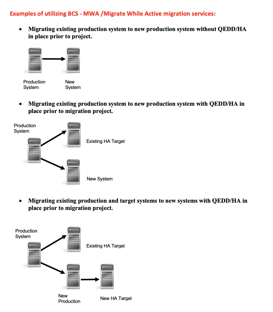 Whether or not you currently have a Quick-EDD/HA implementation, BCS can provide licensing, software installation, and project management services to suit your needs. Migrate While Active projects typically last 30 days or less, depending on overall complexity and testing requirements.